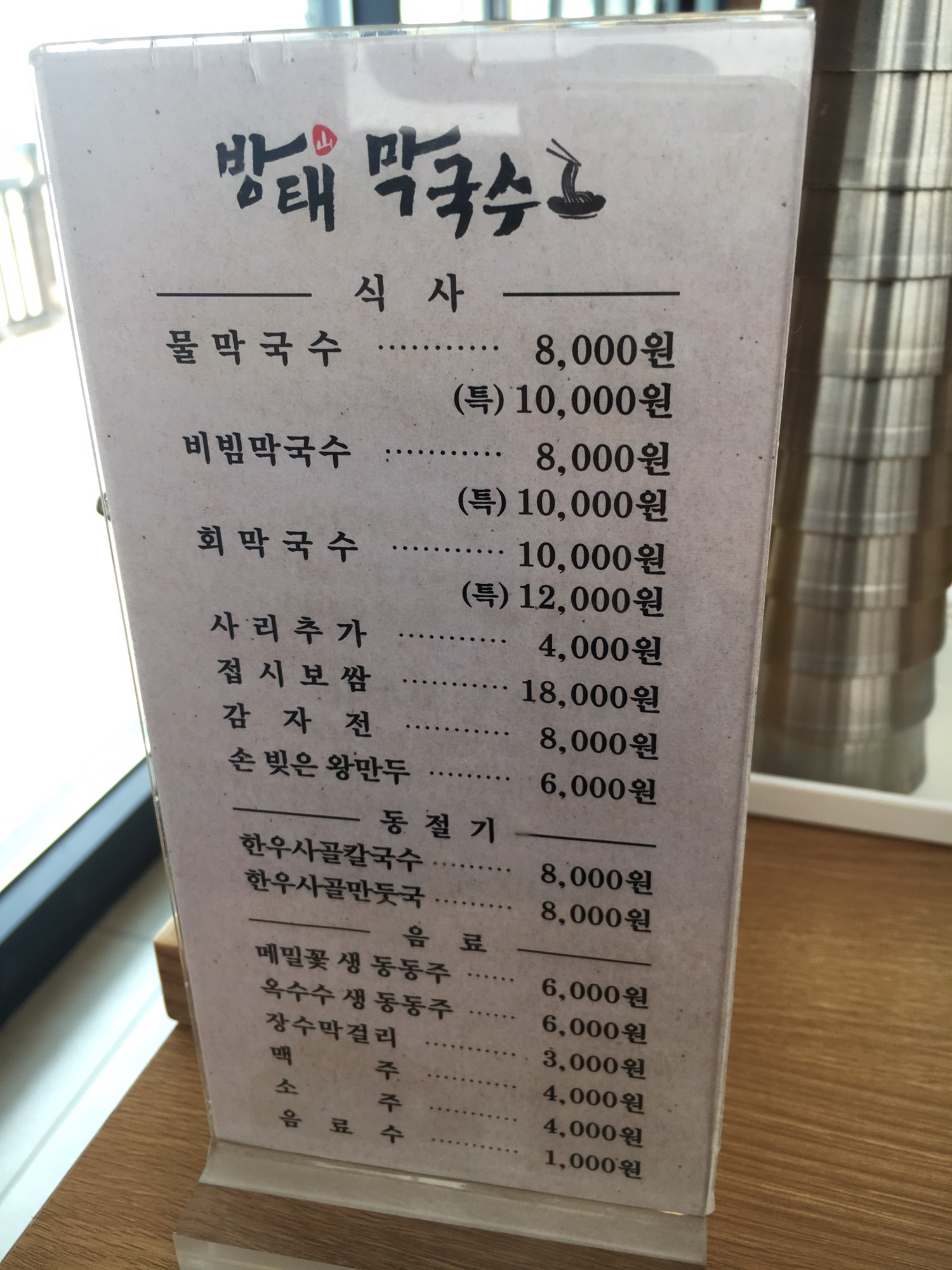 양주 방태막국수 메뉴판을 살펴보았습니다.