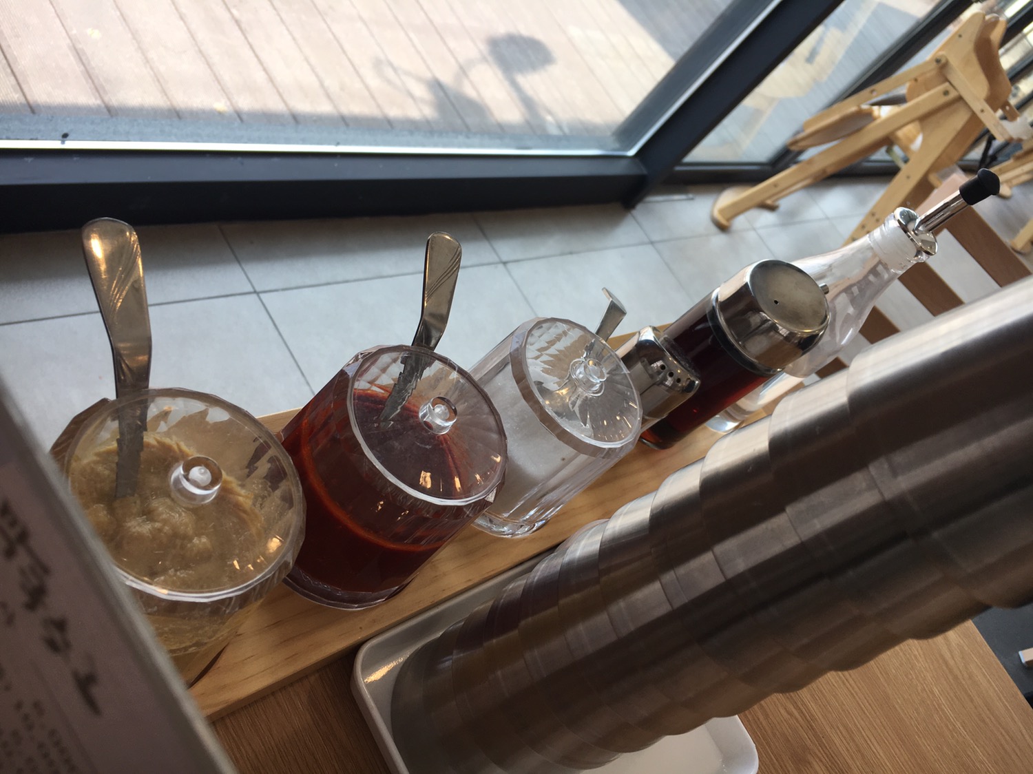 방태막국수 테이블위 양념들이 가지런히 세팅되어 있습니다.