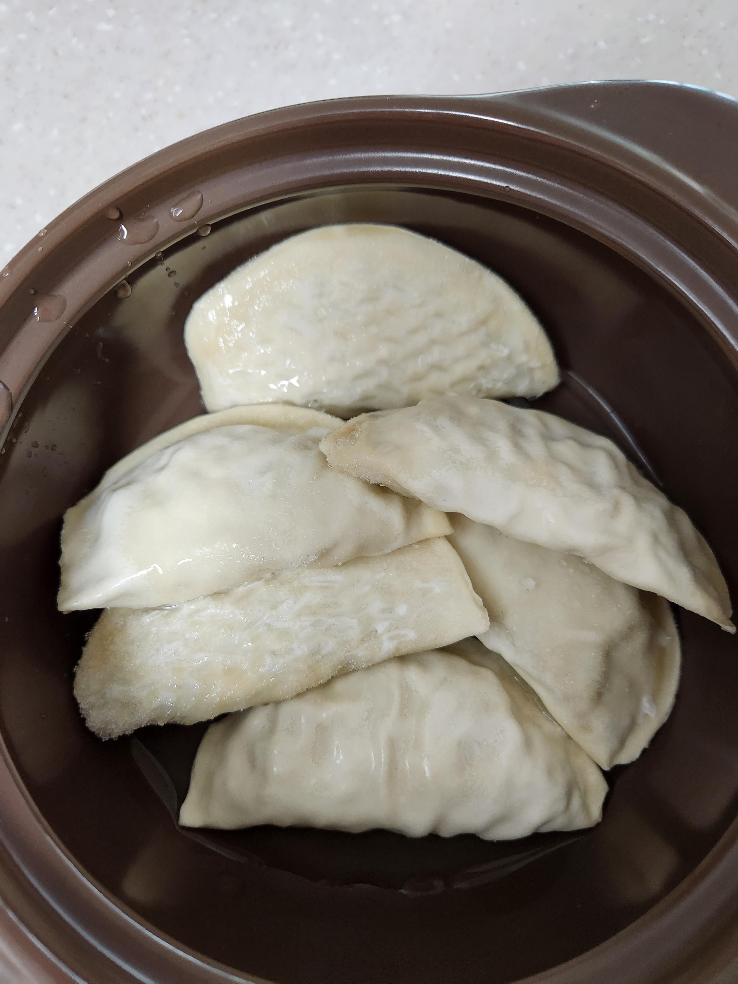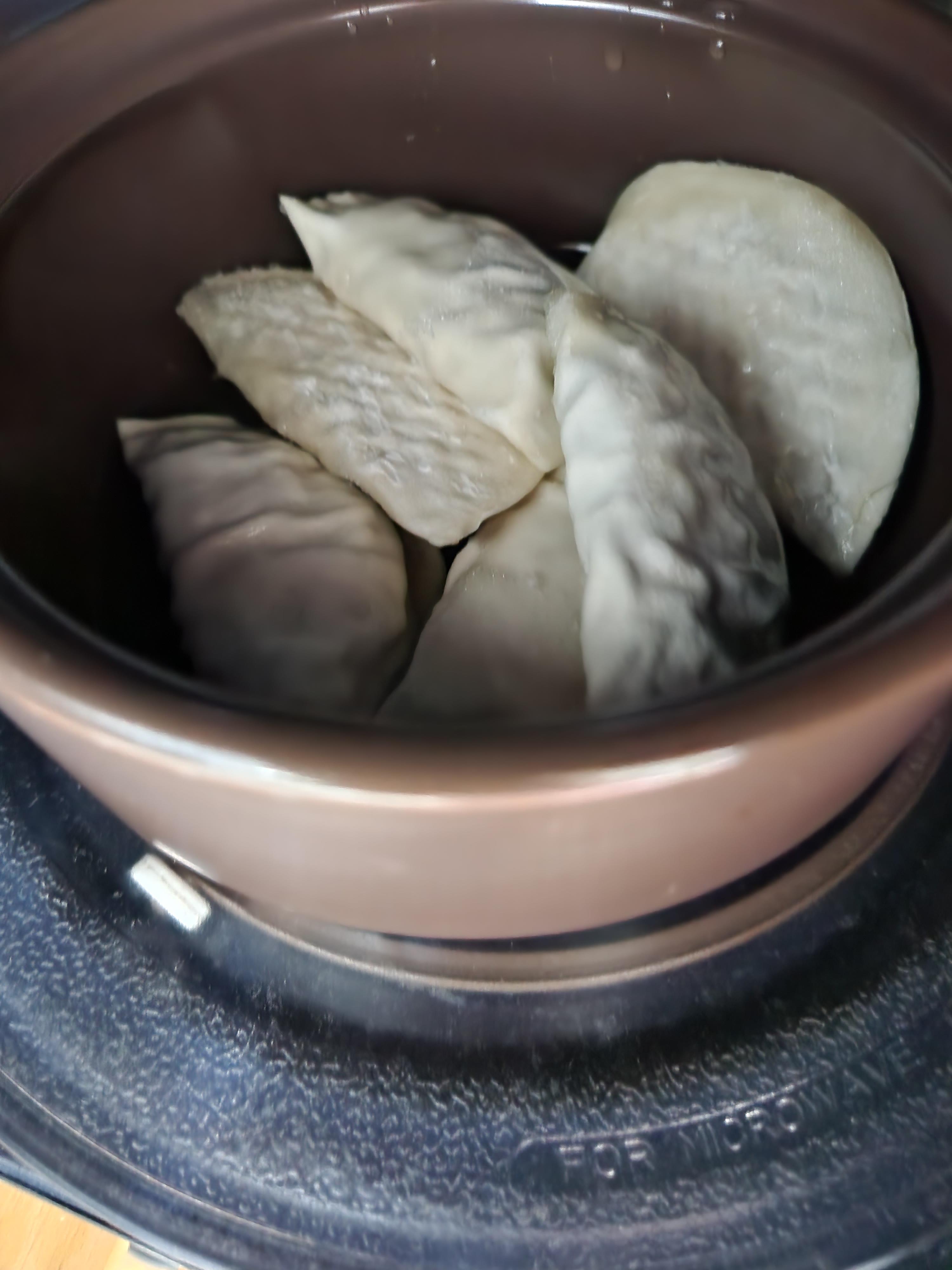 냉동만두를 해동없이 얼린 상태로 그릇에 담고 약간의 물을 조금 넣은 뒤