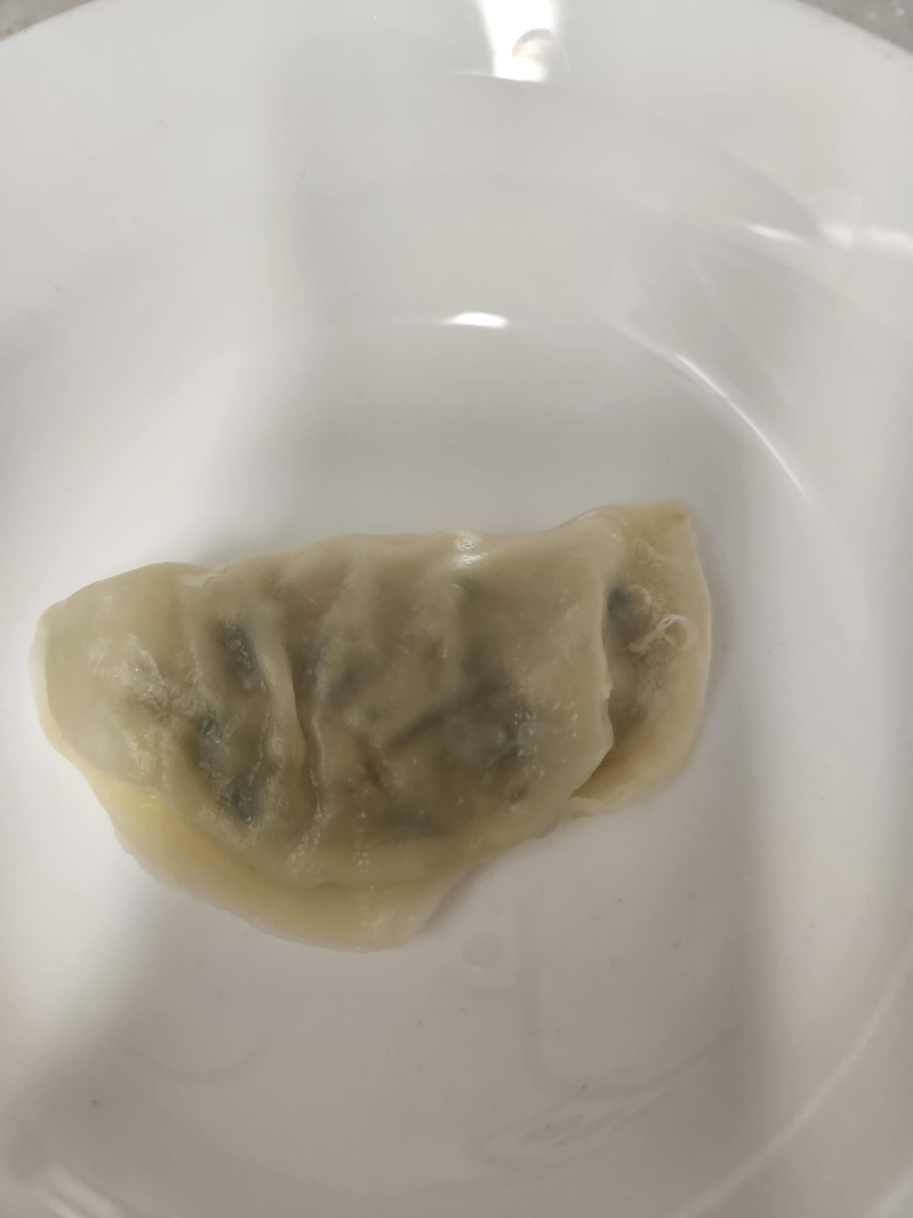 전자레인지에 조리된 만두 속을 요리조리 살펴봅니다.