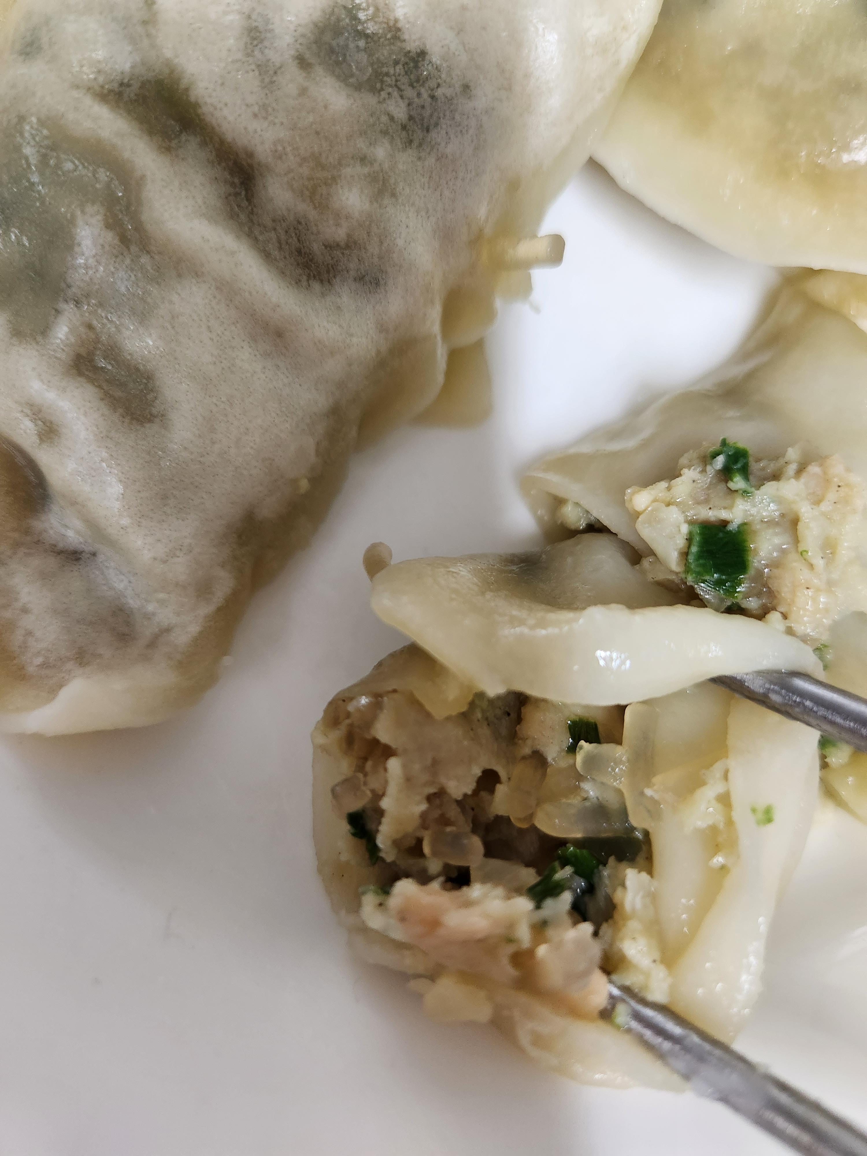 고기의 식감과 당면의 식감이 잘 어우러지고요. 적당히 쫄깃부드러운 만두피가 찐만두처럼 잘 조리되었습니다.