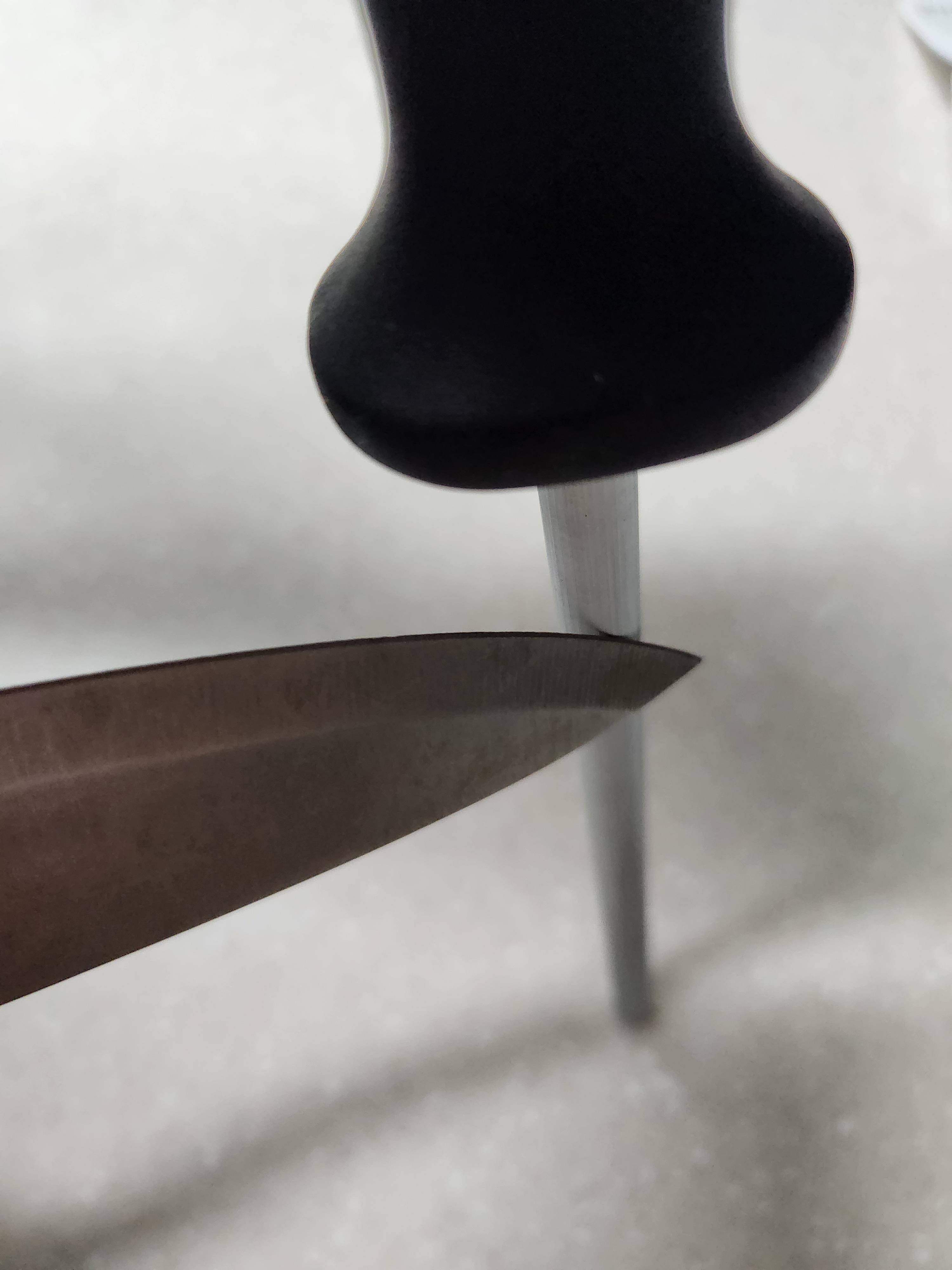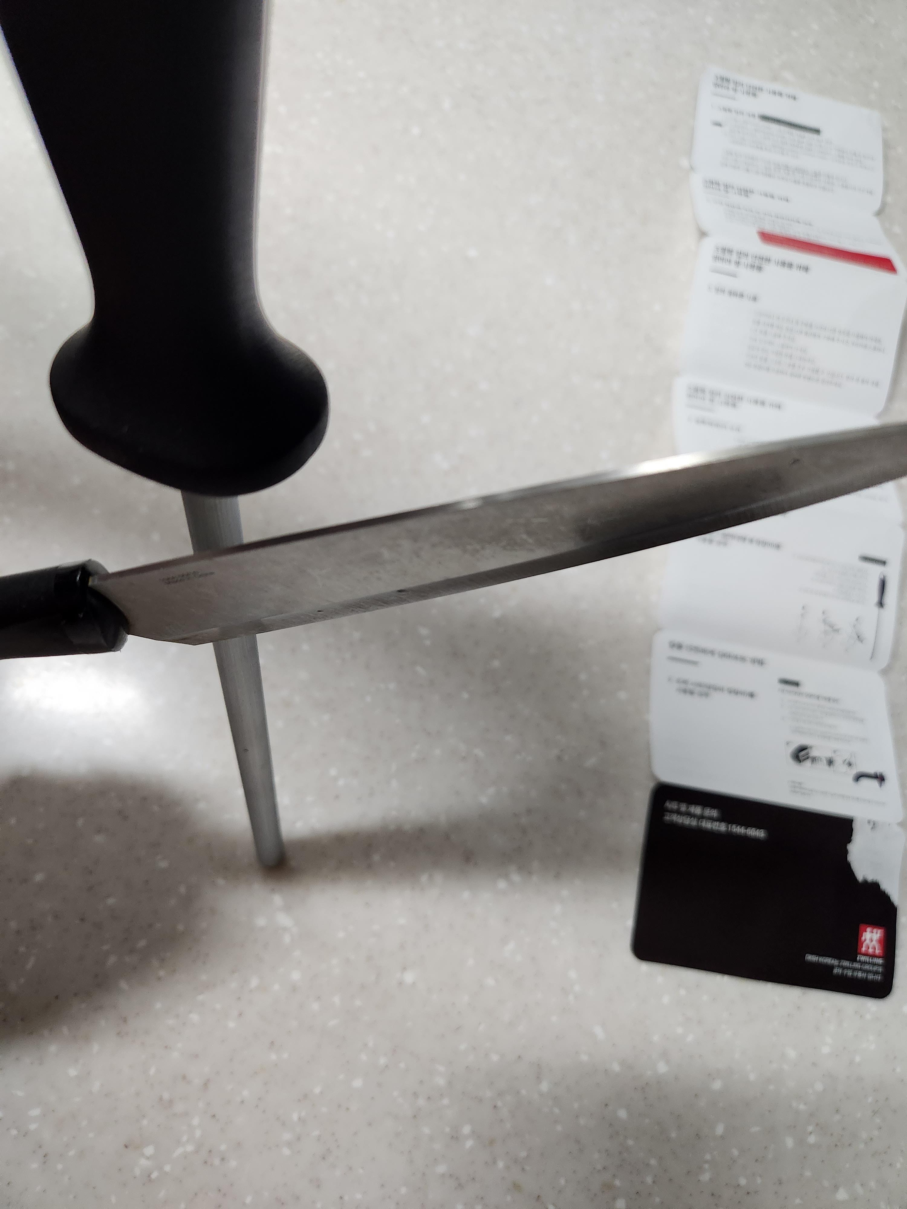 칼갈이 전체를 이용하여 슥슥 칼을 갈아서 칼이 잘 들게만들어보았습니다.