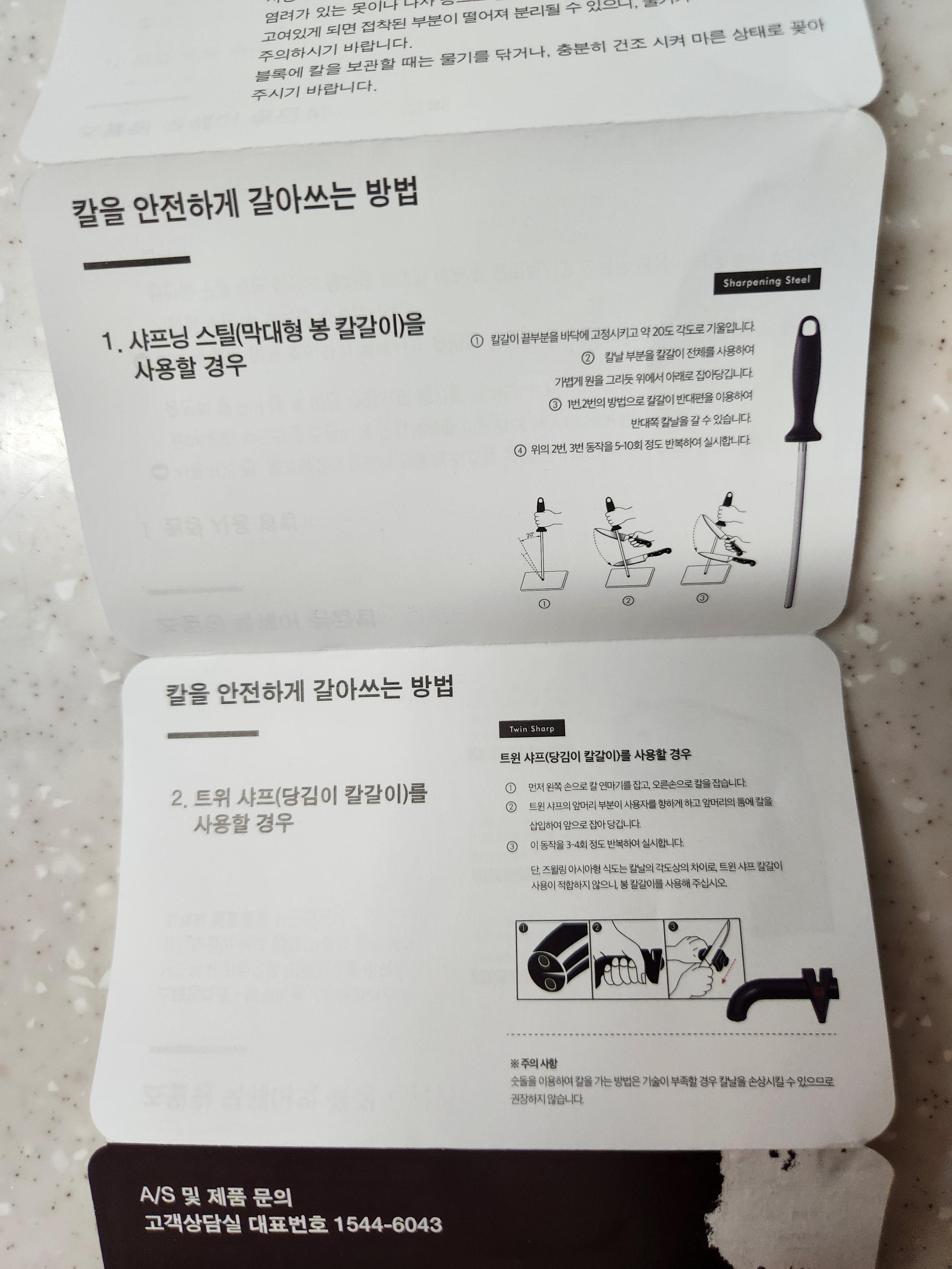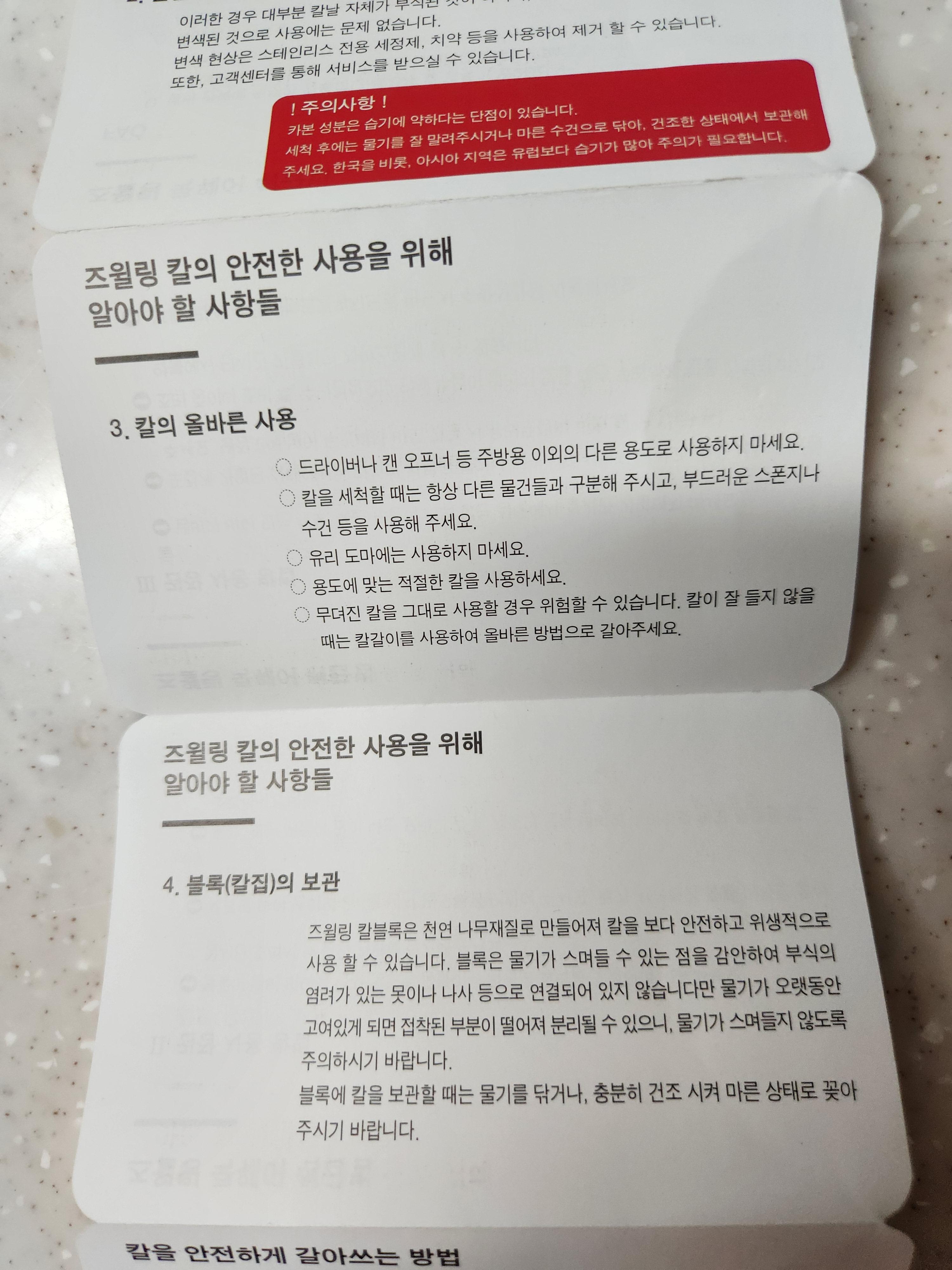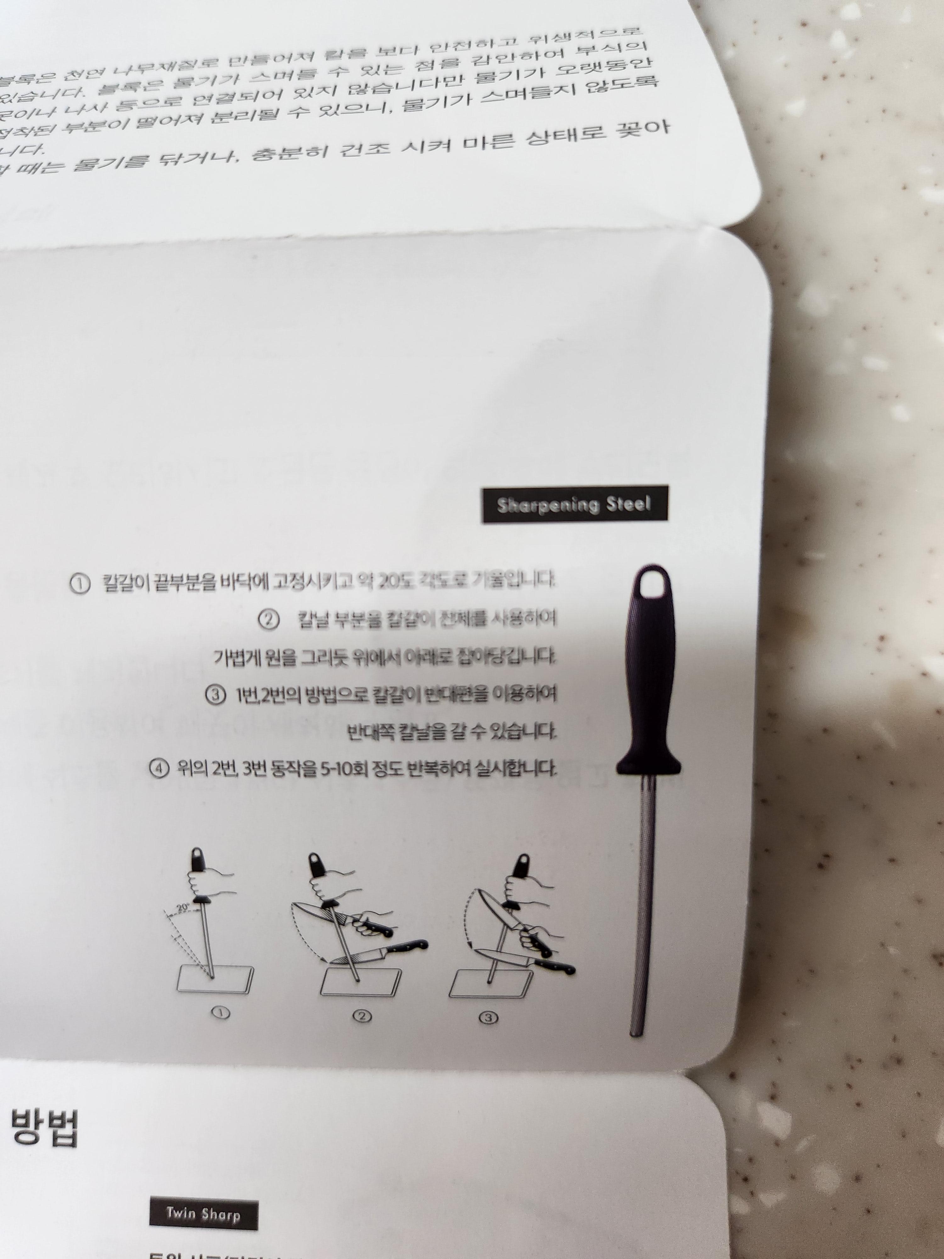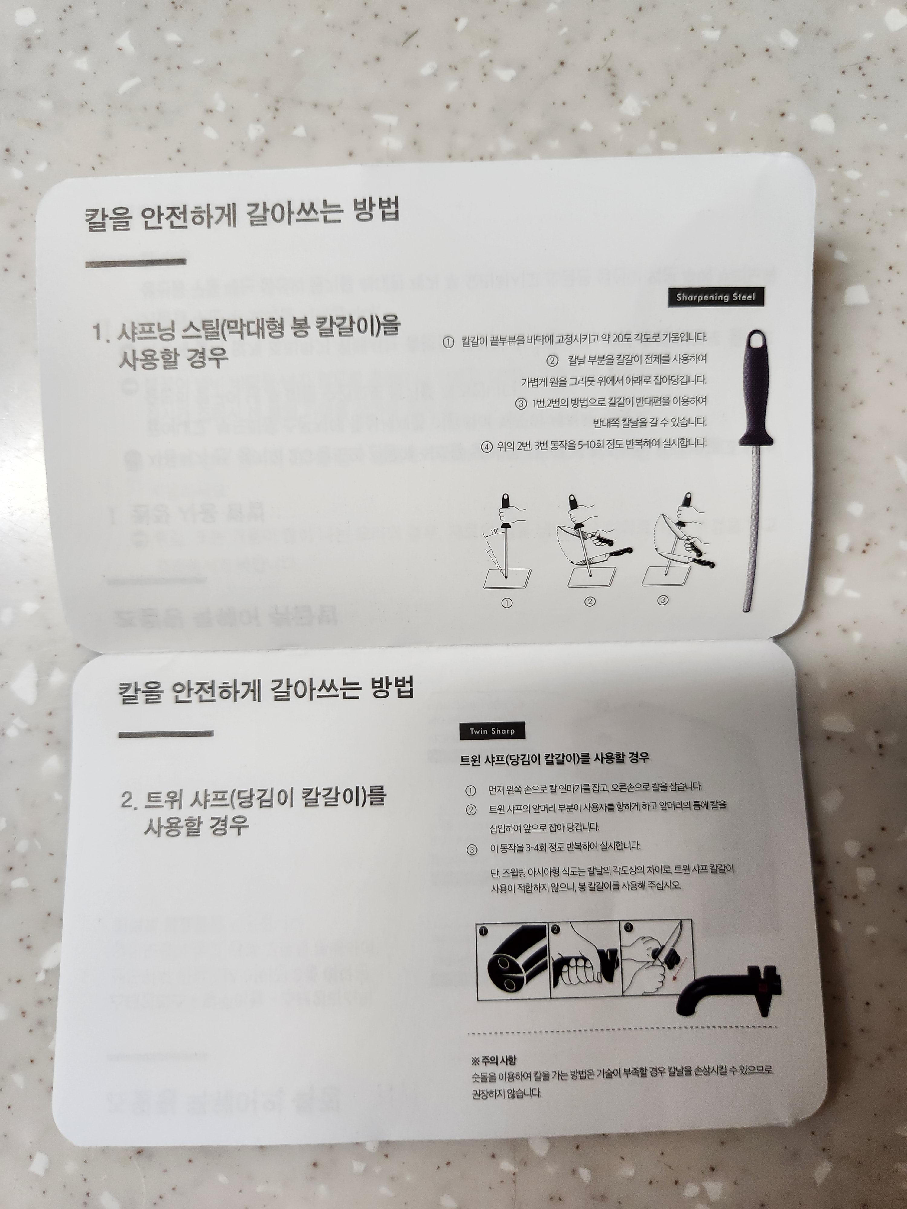 무뎌진 칼을 사용할 경우 위험할 수 있으니 칼갈이를 이용하여 잘 갈아서 사용하라고도 나와있네요.