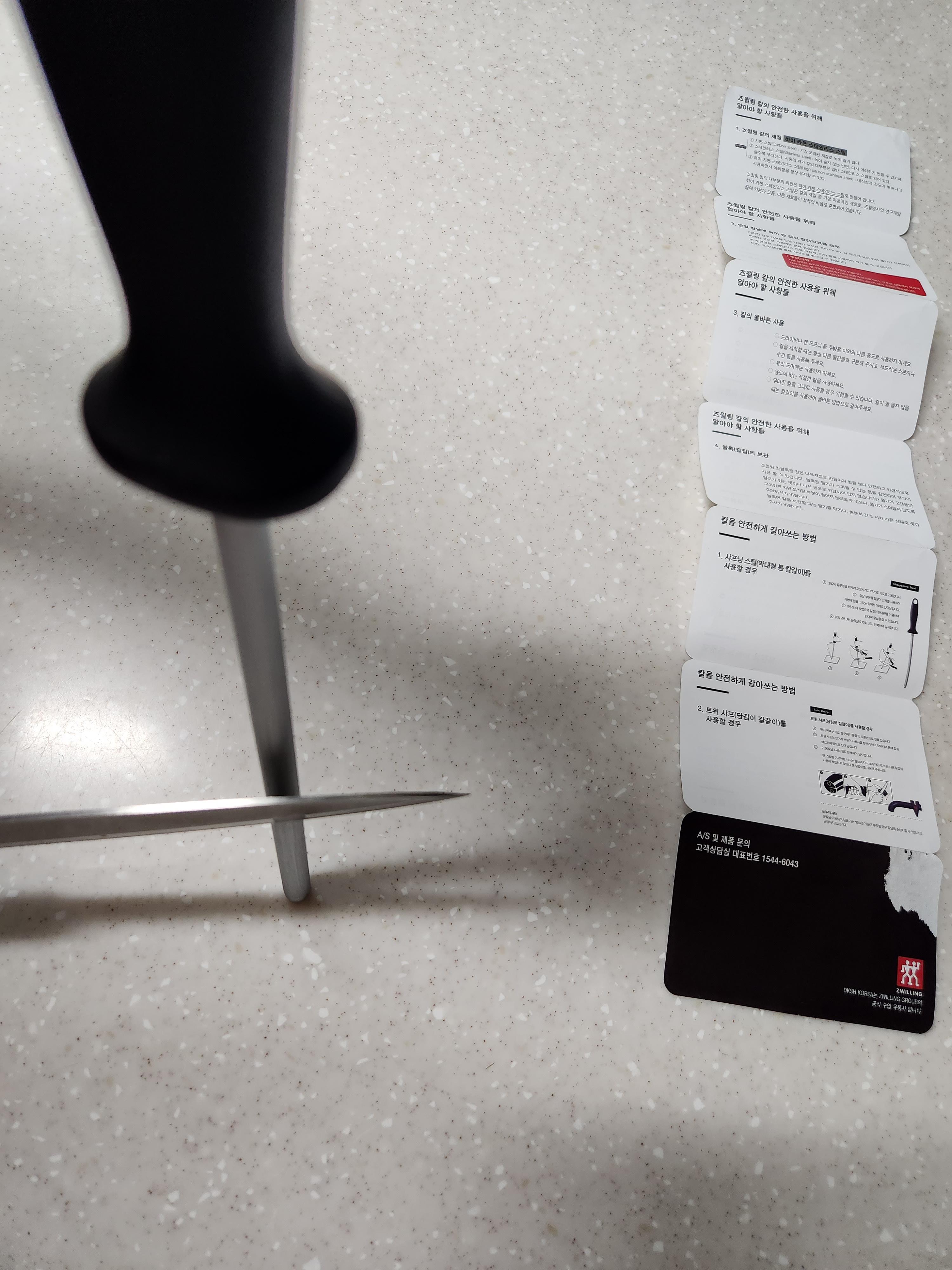 이렇게 스테인레스 재질로 되어있는 헹켈 즈윌링 봉형 칼갈이입니다.