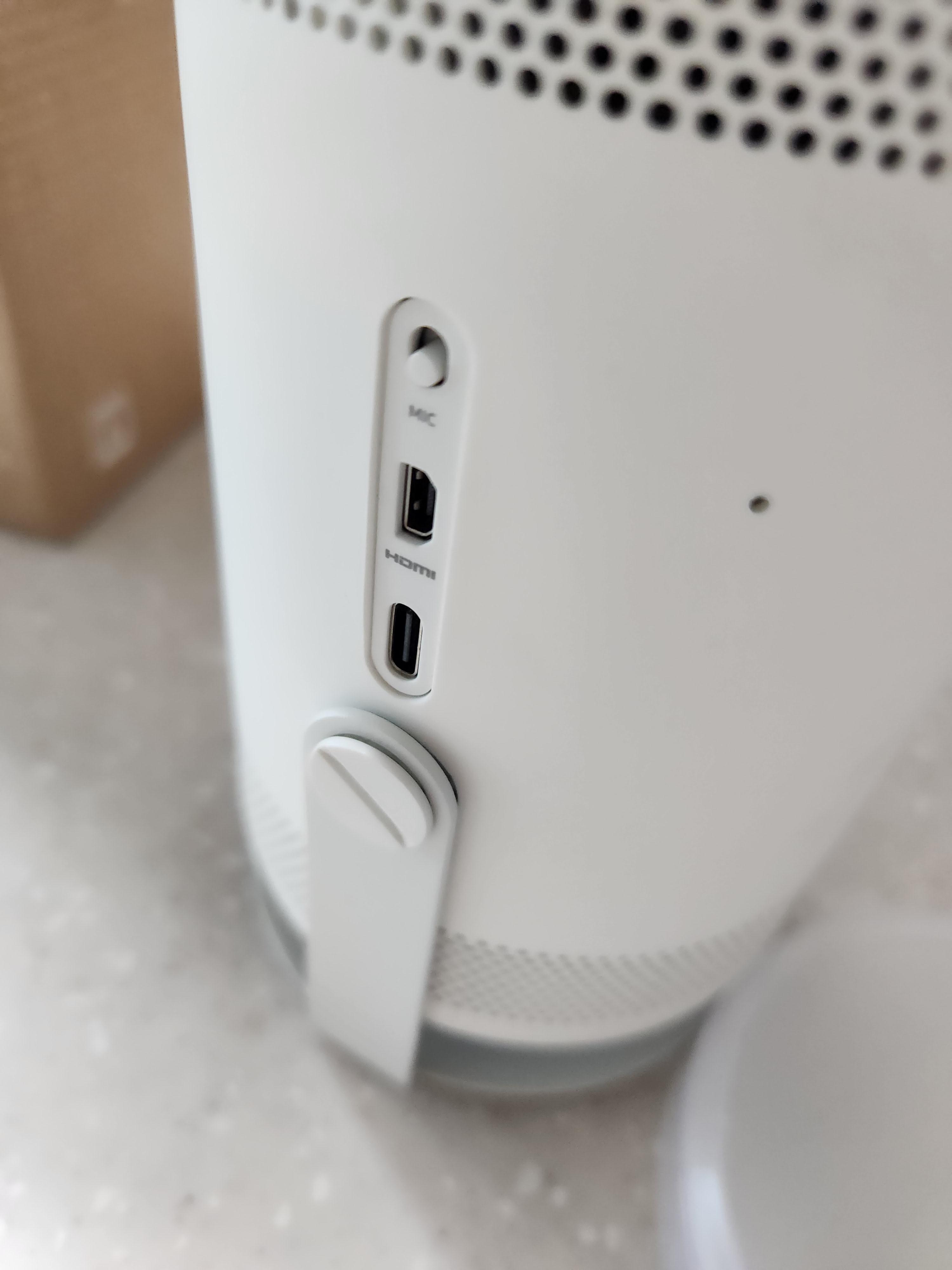 박스입니다. 전체 사이즈가 크지 않습니다. 본체만 있는 녀석으로 가져왔는데 어디 놓아도 쏘기가 나쁘지 않습니다. 전원만 공급해주면 되니 깔끔합니다. 저는 침대 위에 올려두고 자기 전에 천장에서 좀 보다가 잡니다. 구질구질한 물건들을 싫어 하는 편인데 역시 깔끔하게 티비를 대체할 수 있습니다. 침실에 티비를 편하게 보려면 티비를 벽 상단이나 천장에 달아야하는데 이게 보통일이 아닌데 이 녀석은 간단히 해결 가능해서 가장 만족스럽네요.