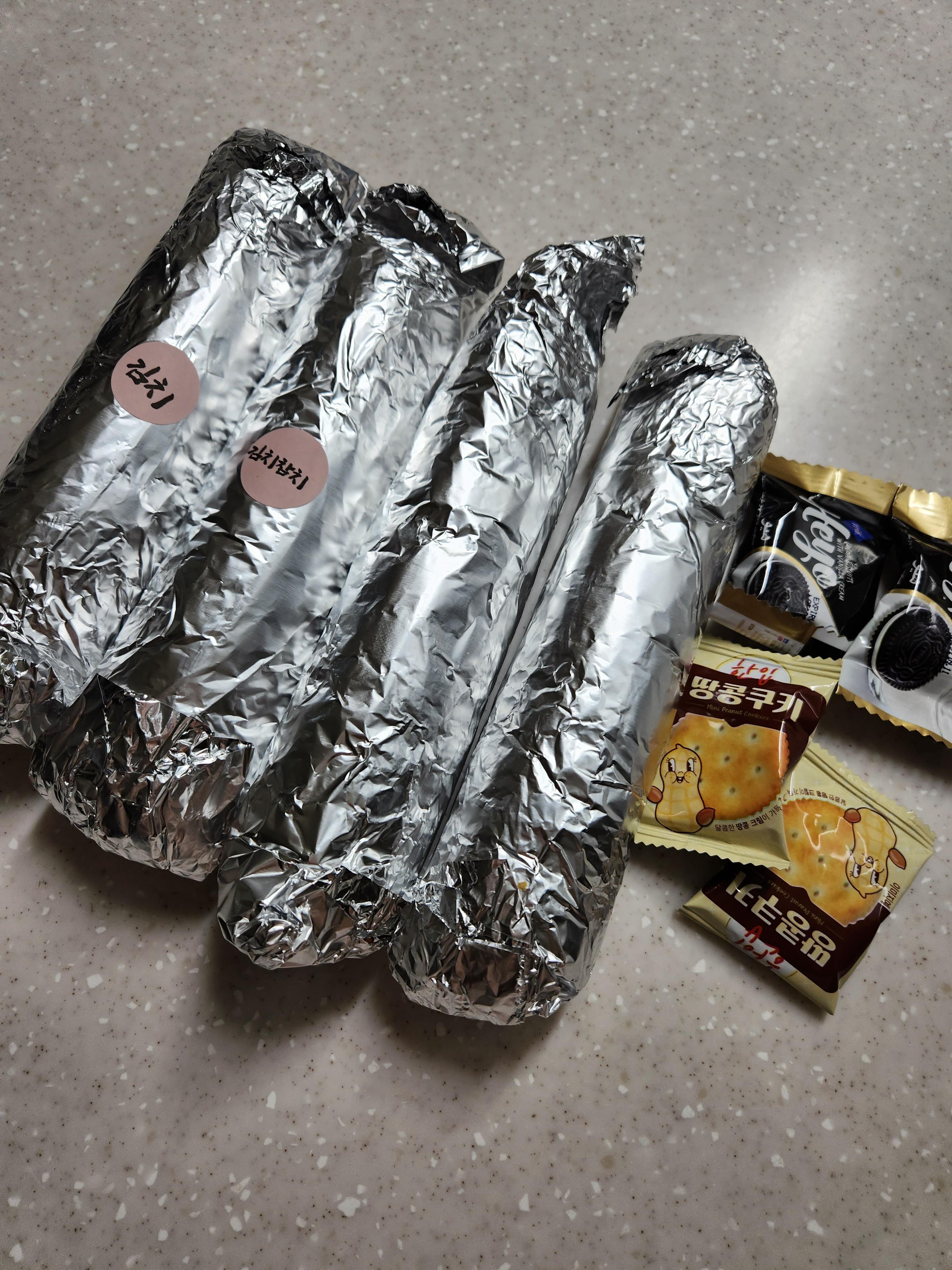 삼형제 김밥 중에서 저는 김치김밥, 김치참치 김밥, 기본 김밥을 시켰습니다.
