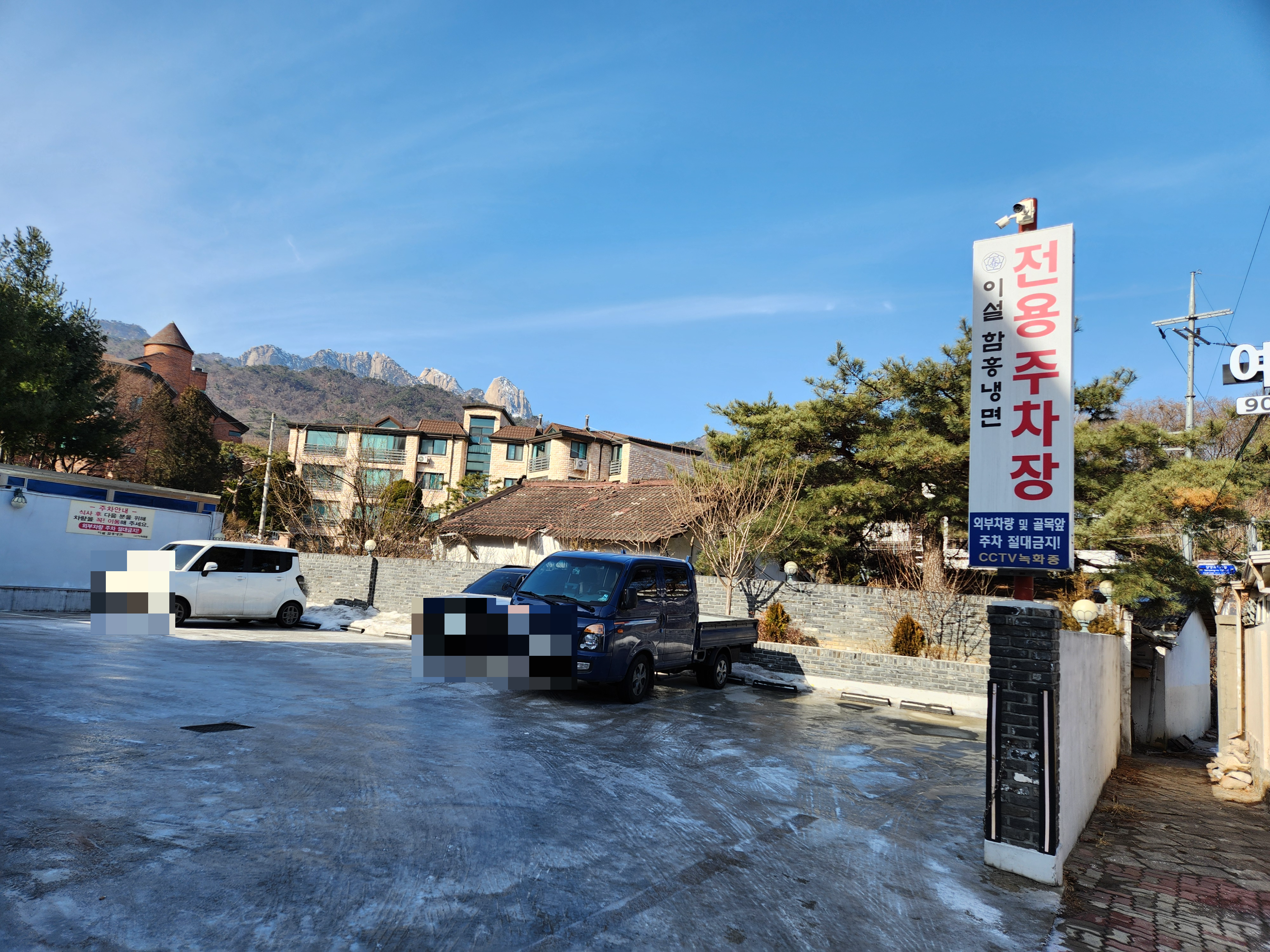 이설함흥냉면 수유본점 전용 주차장입니다. 식당 건물 뒷편에 있어요.