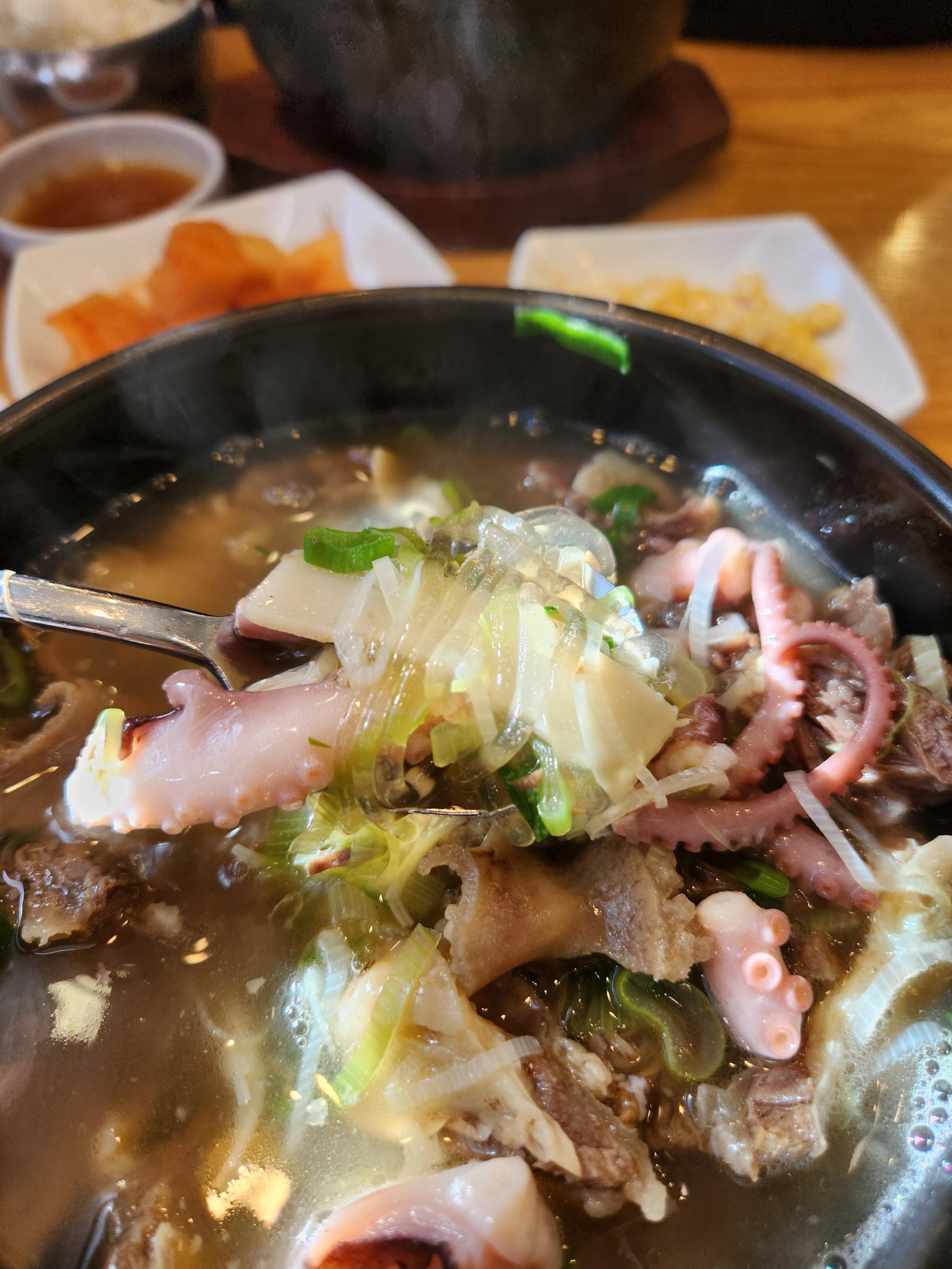 고기덩어리도 두둑히 들어있고, 국물도 맛있고 낙지도 쫄깃하면서 맛있어요.
