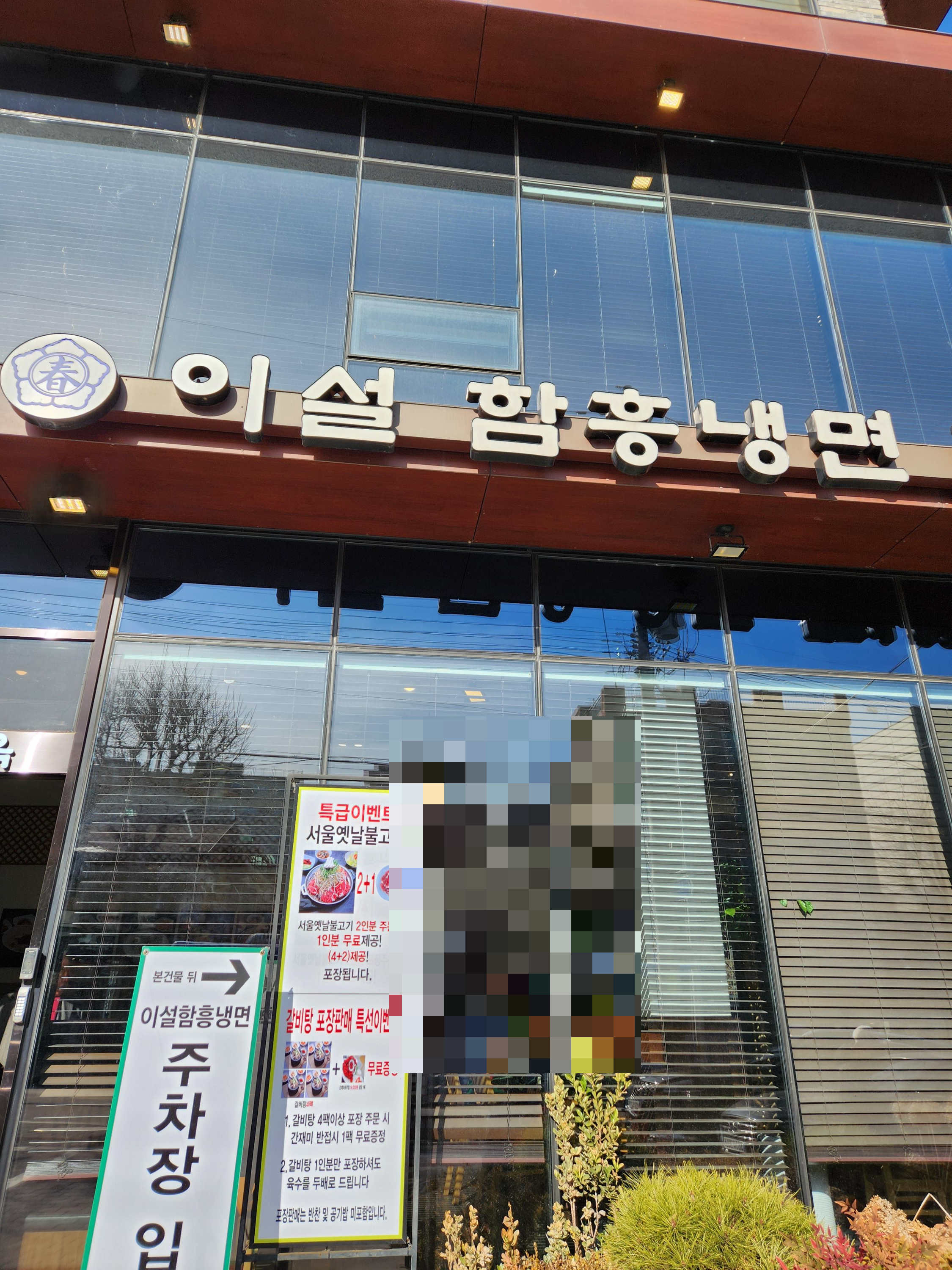 차를 몰고갈 경우 주차가 편한지가 중요하죠. 이설함흥냉면엔 주차장이 마련되어있으니