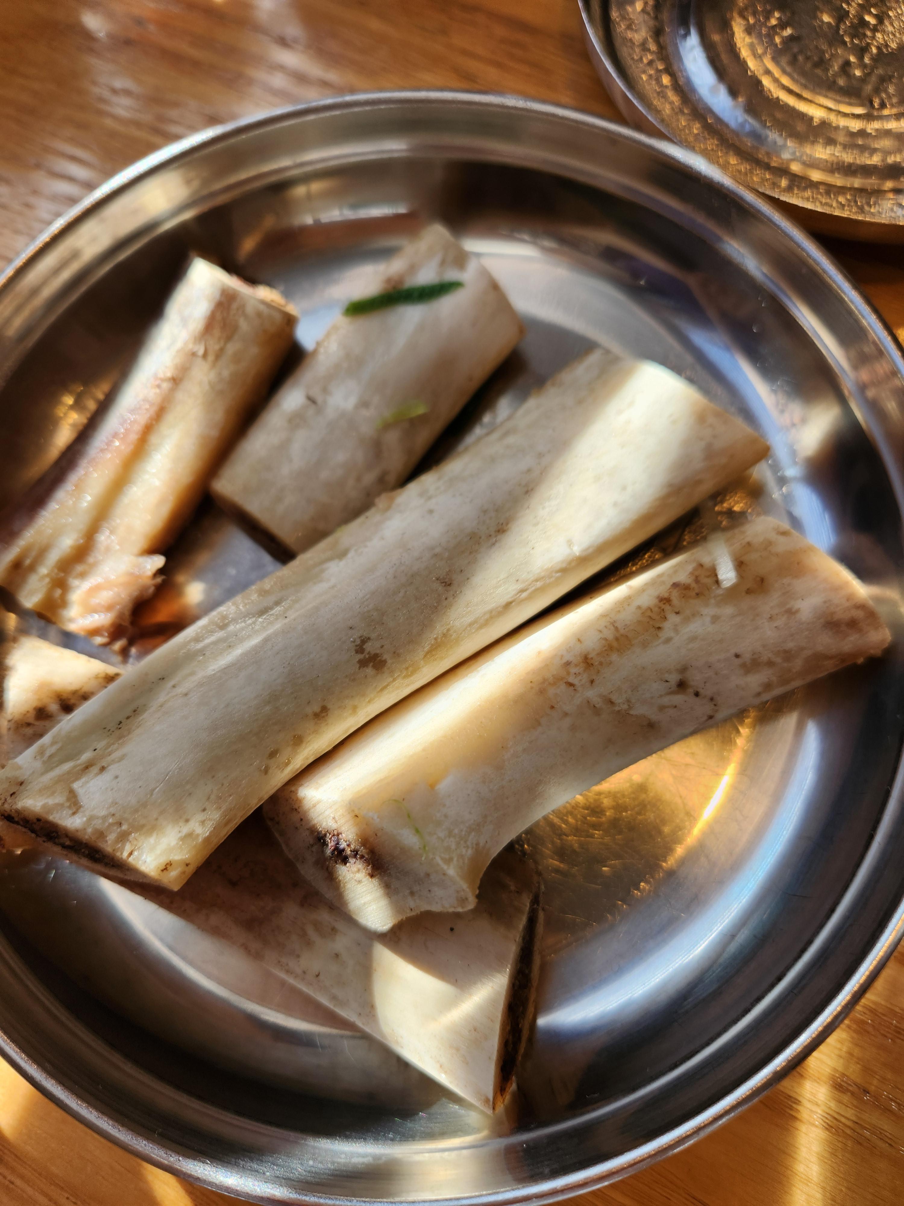 낙지갈비탕에서도 갈비 뼈를 발려내었더니 뼈들이 쌓입니다.